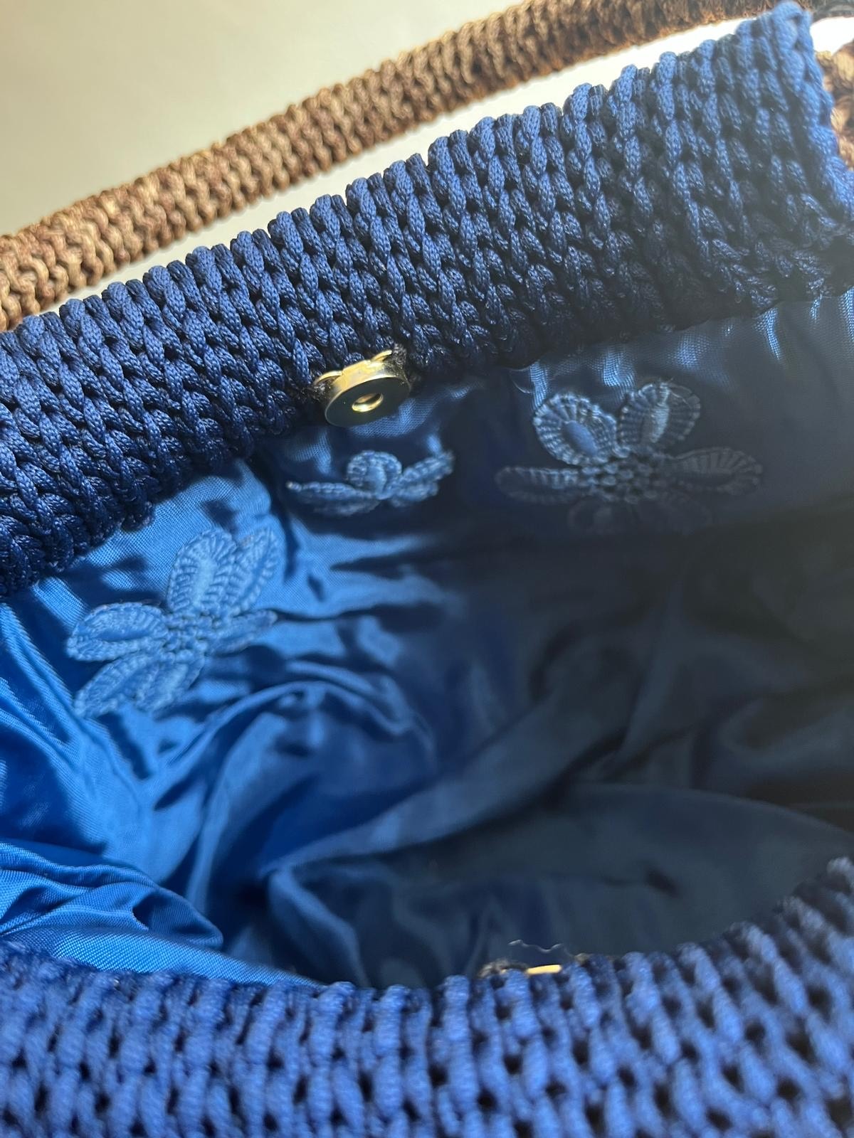 Sac Crochet – Bleu et chiné marron beige